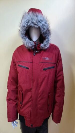 Chamarra impermeable con capuchaa desmontablea cierre, cuello cadete, bolsillos laterales, bolsillo en brazo izquierdo, un bolsillo interno, relleno de plumon y fibra.