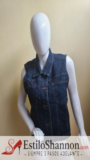 Chaleco cuello camisa. Tela jean botones de apertura, dos mini bolsillos frontales