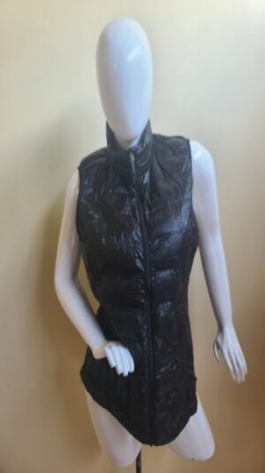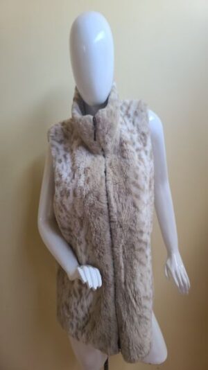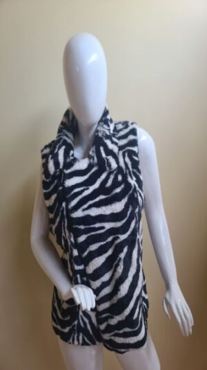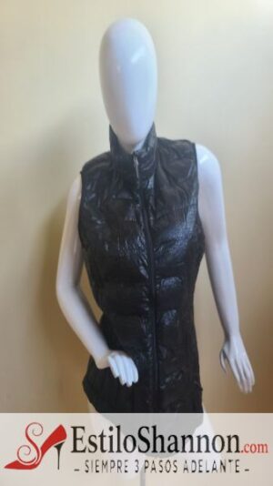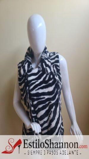 Chaleco cuello cadete, doble cara uno animal print y negro impermeable, cierre de apertura , dos bolsillos laterales exterior e interior