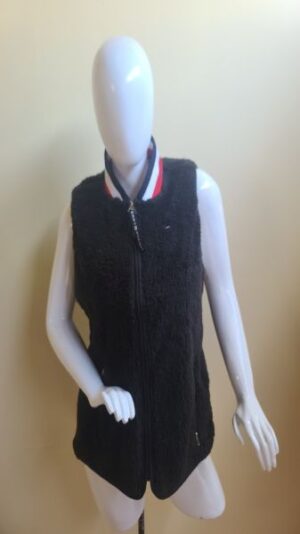 Chaleco cuello cadete, doble cara, una impermeable y la otra afelpada. Ambas caras con dos bolsillos laterales, cierre de apertura