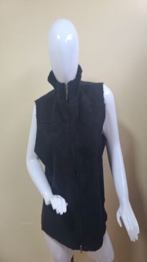 Chaleco cuello cadete con exterior gamusado, cierre de apertura, dos bolsillos laterales
