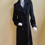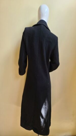 Saco largo con solapa, manga larga, dos bolsillos laterales en vertical, botones dorados.