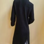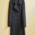 Saco largo con solapa, manga larga, dos bolsillos laterales, detalles de botones.