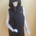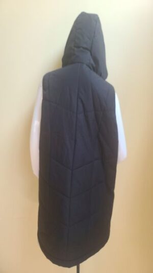 Chaleco con capucha, cierre de apertura, dos bolsillos laterales.