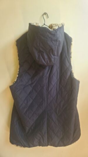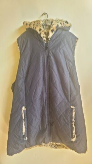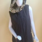 Chaleco con capucha, cierre de apertura, dos bolsillos laterales, dos bolsillos interiores, interior de afelpado animal print