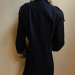 Saco con solapa manga larga, detalles de botones, dos bolsillos laterales, cinturon de ajuste en cintura.