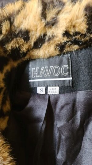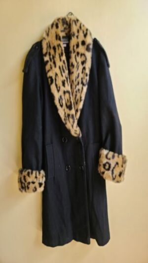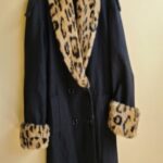 Saco con solapa animal print, puños con detalle animal print, exterior frizado, cordon de ajuste en la cintura.