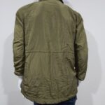 Chaleco cuello cadete, cierre delantero de apertura, dos bolsilos laterales abiertos, dos bolsillos internos, tela frizada delgada, combinacion de impermeable en hombros y cuello