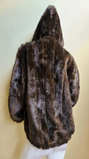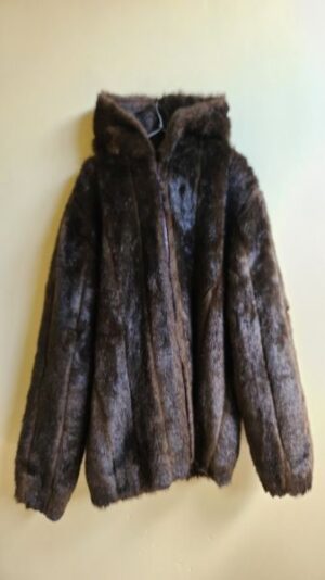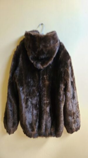 Chompa con capuchaa fija, tipo corderito con combinacion de impermeable del pecho y parte de espalda, dos bolsillos laterales, uno en pecho, puños con liga de expansión.