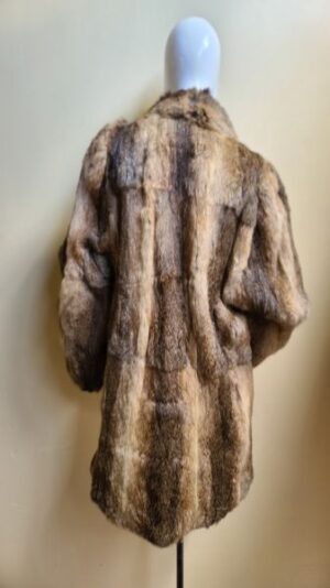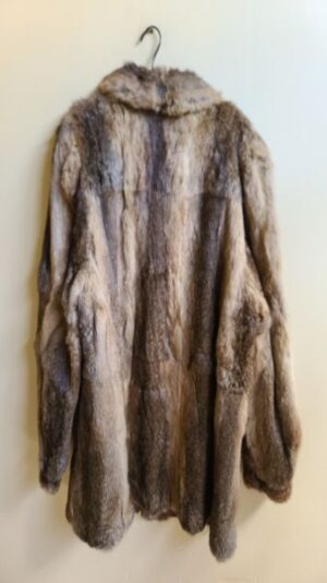 Saco largo con solapa afelpada, puños afelpados, interior afelpado, dos bolsillos laterales en diagonal.