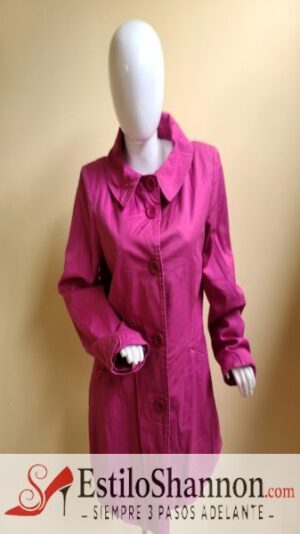 Saco largo cuello camisa, manga larga, broches de apertura, dos bolsillos laterales.