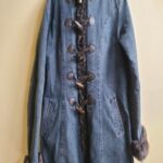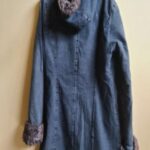Chamarra de jean con capucha, puños afelpados, capucha y detalle de cierre afelpados, dos bolsillos laterales, interior frizado.