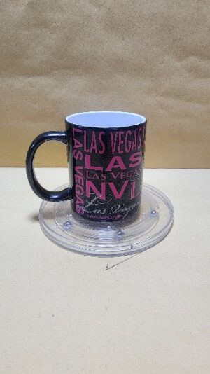 Taza Negra con letras rosadas sobre Las Vegas