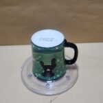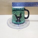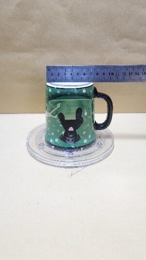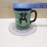 Taza Negra con fondo verde y un perrito negro dentro una taza verde