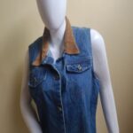 Chaleco cuello camisa, (tela corderoi en cuello) tela tipo jean, dos bolsillos laterales en pecho