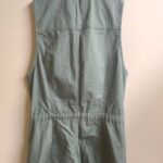 Chaleco cuello cadete, tela jean, dos bolsillos laterales abiertos, dos bolsillos frontales, cordones de ajuste en cintura