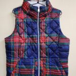 Chaleco cuello camisa, diseño cuadriculado, un solo boton de apertura, dos bolsillos ficticios