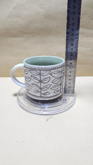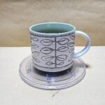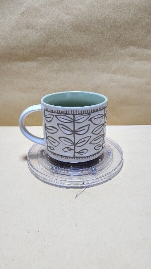 Taza Blanca con fondo verde claro y con figuras en semi alto relieve de hojas