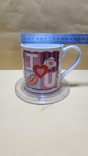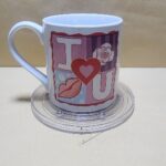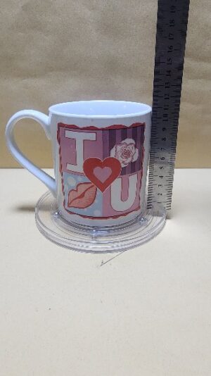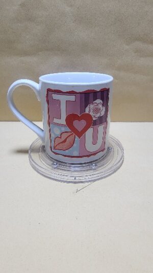 Taza Blanca con impresion en cuadro que indica I Love You