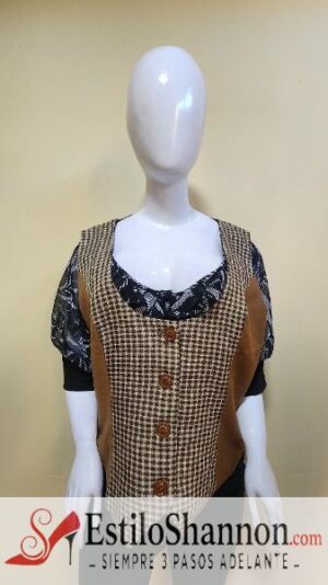 Chaleco cuello camisa, diseño cuadriculado, un solo boton de apertura, dos bolsillos ficticios