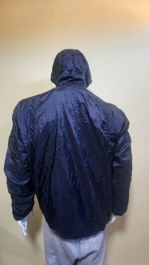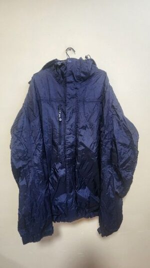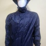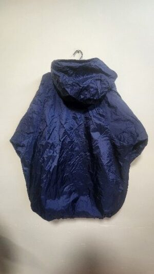 Chamarra impermeable con capuchaa, cierre de apertura, dos bolsillos laterales, puños con friza, friza interna.