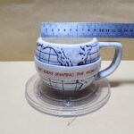 Taza Blanca tipo tazon con alto reliebe del mundo y texto en Ingles (Ideas Tecnicas moldeando el Mundo)