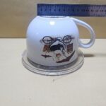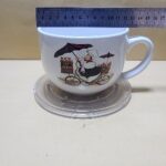 Taza Blanca tipo tazon con impresion de un Panadero en bicicleta y su paraguas