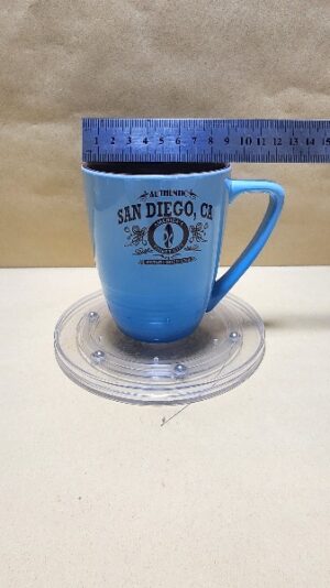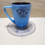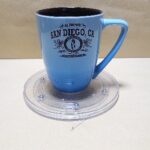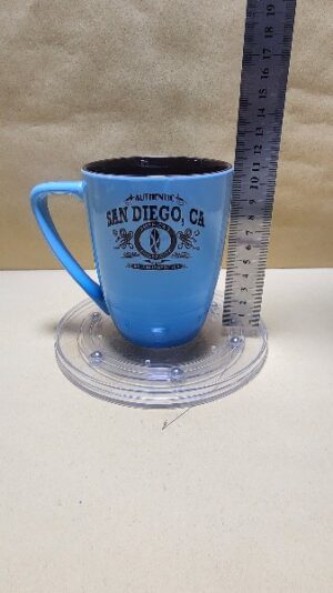 Taza Celeste Azul con fondo Negro, con impresion y texto de Sandiego California