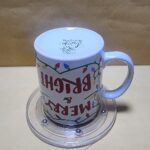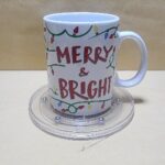 Taza Blanca con impresion de Luces Navideñas y texto de (feliz navidad brilloza)
