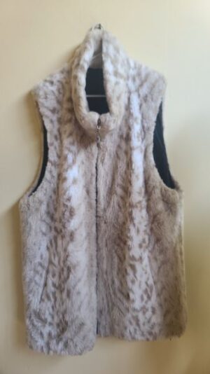 Chaleco cuello cadete, doble cara uno animal print y negro impermeable, cierre de apertura , dos bolsillos laterales exterior e interior