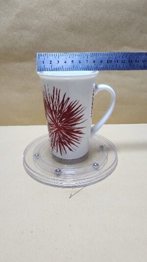 Taza Blanca Alta semi clara con un estallido de rayas royas de StarBucks