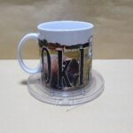 Taza Blanca con Impresion de paisaje y texto de Oklahoma en alto relieve