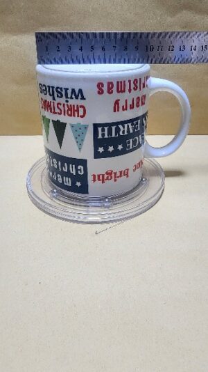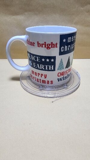 Taza Blanca con varios deseños relativos a deseos navideños en Ingles