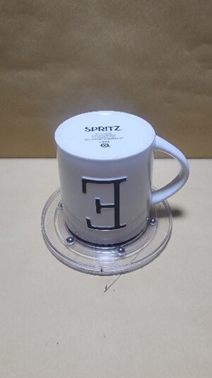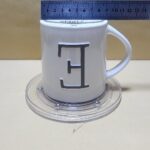 Taza Blanca Grande con la letra E en alto relieve pintada de plomo