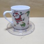 Taza Blanca con 4 dibujos artisticos de Papa Nuel y pinos verdes