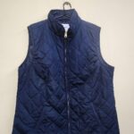 Chaleco cuello cadete, cierre de apertura, dos bolsillos laterales, uno en pecho.