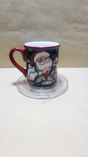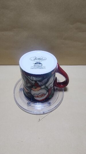 Taza Blanca Hermosa con pintura de Papanuel haciendo un caballo de juguete con agarrador Rojo