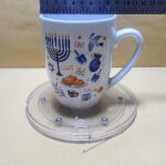 Taza Blanca con figuras de Hanuka celebracion navideña