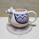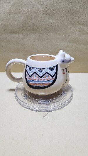 Taza Crema Hermosa y Bella en forma de Llama con lindos colores que resaltan su carga, la cola es el agarrador