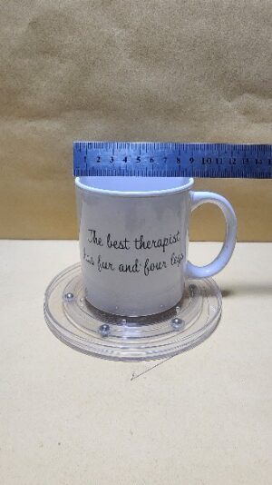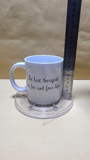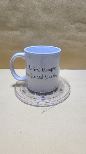 Taza Blanca con texto en Ingles (el mejor terapista tiene pelaje y cuatro patas)