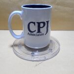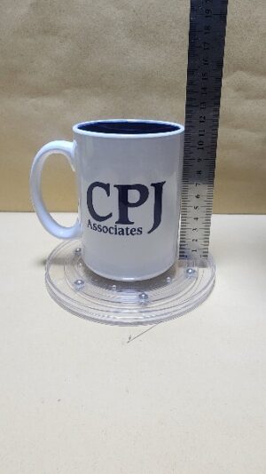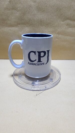 Taza Blanca con fondo Azul, Texto en Ingles CPJ Accociates