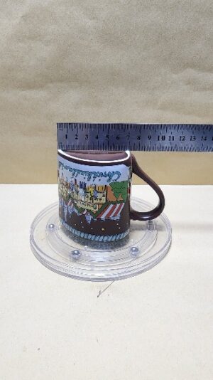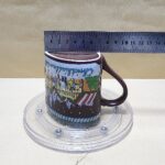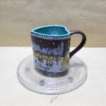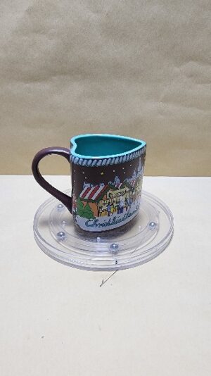 Taza Celeste Bellizima con forma de Corazon pintada por fuera en café y casas de Navidad en Chicago I diseño al interior