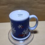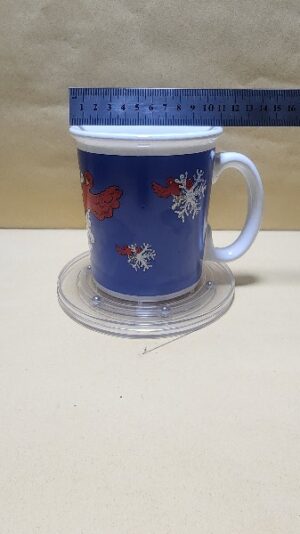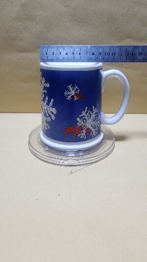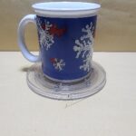 Taza Blanca con impresion de franja Azul y copos de Nieve