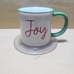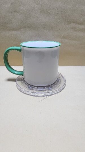 Taza Blanca con borde y agarrador Verde, Texto en Ingles (disfrute)