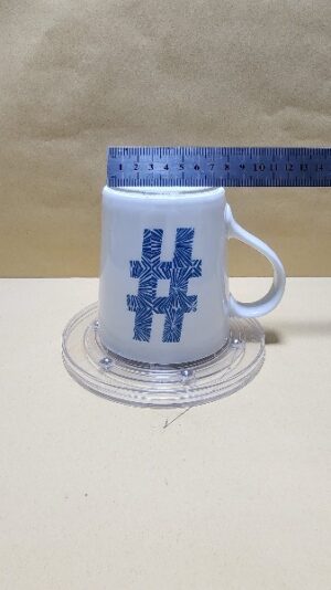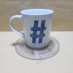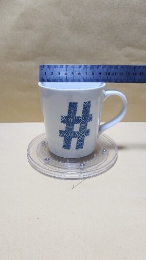 Hermosa Taza Blanca con sello azul del simbolo #