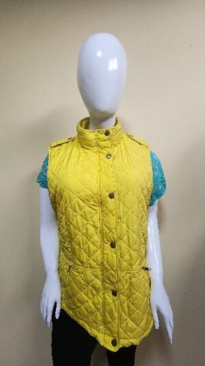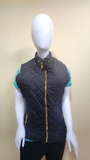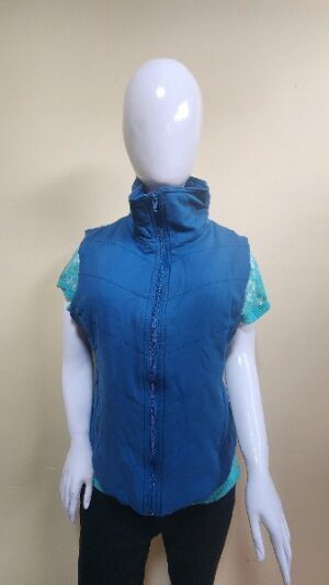 Chaleco cuello cadete, cierre de apertura, dos bolsillos laterales, relleno de fibra