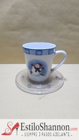 Taza Blanca elegante con motivos navideños y muñeco de nieve