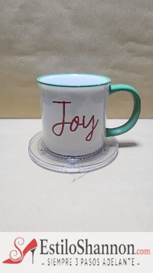 Taza Blanca con borde y agarrador Verde, Texto en Ingles (disfrute)