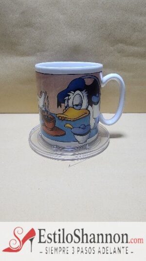Taza Blanca con impresion de Pato Donald Muerto de sueño por un Cafe