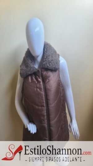 Chaleco doble cara, una impermeable y otra frizada con cuello camisa afelpado, dos bolsillos laterales internos y externos